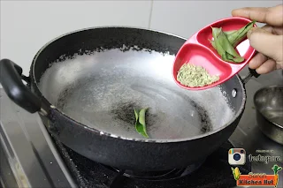 In a kadai, Add oil, Saunf, Curry leaves, Onions, Green chilli and Stir well.